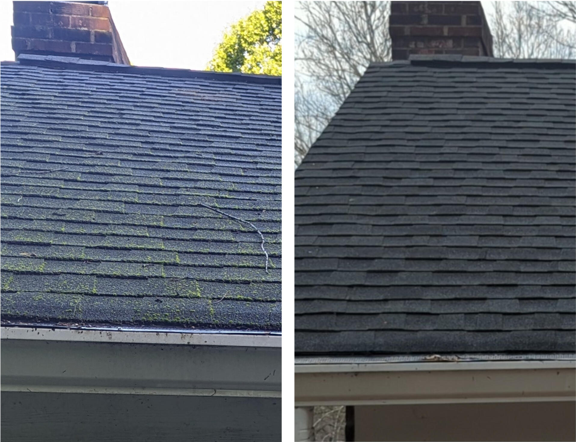 Low-pressure roof washing to remove algae and organic growth safely.