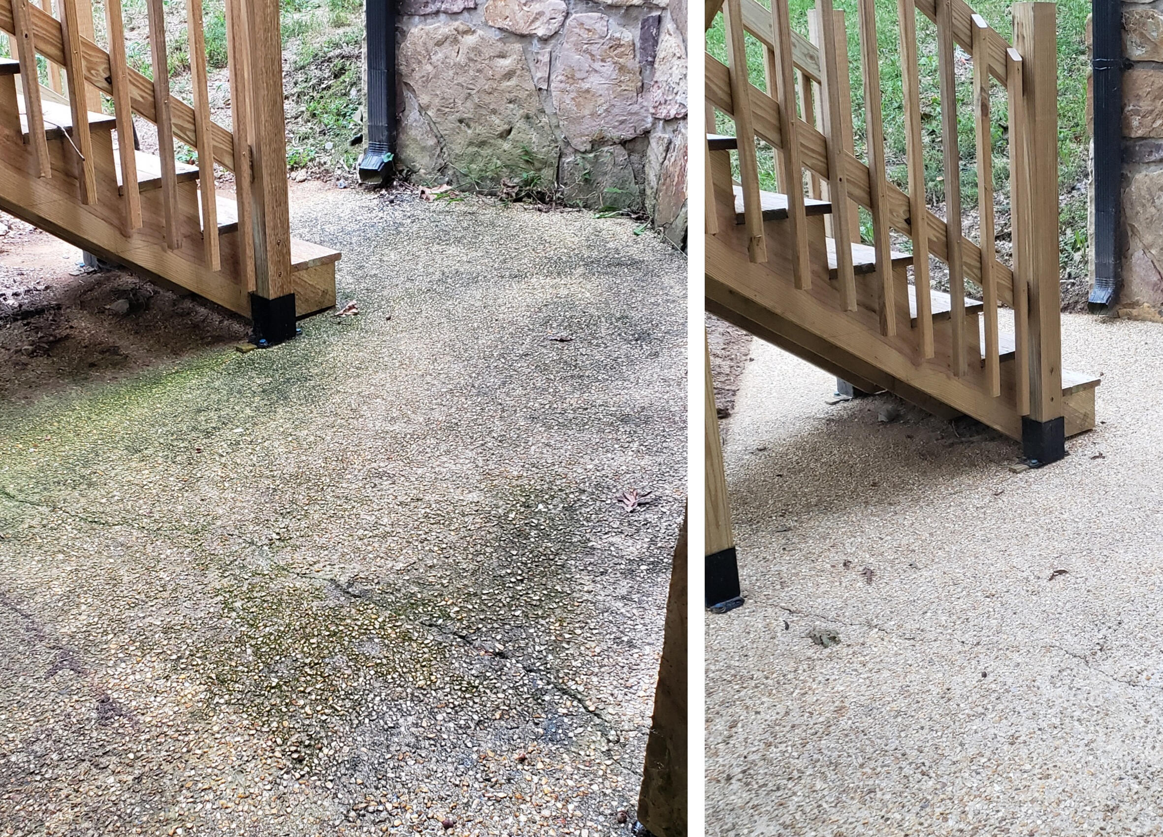 Driveways, sidewalks, and patios cleaned using the appropriate pressure and chemistry.