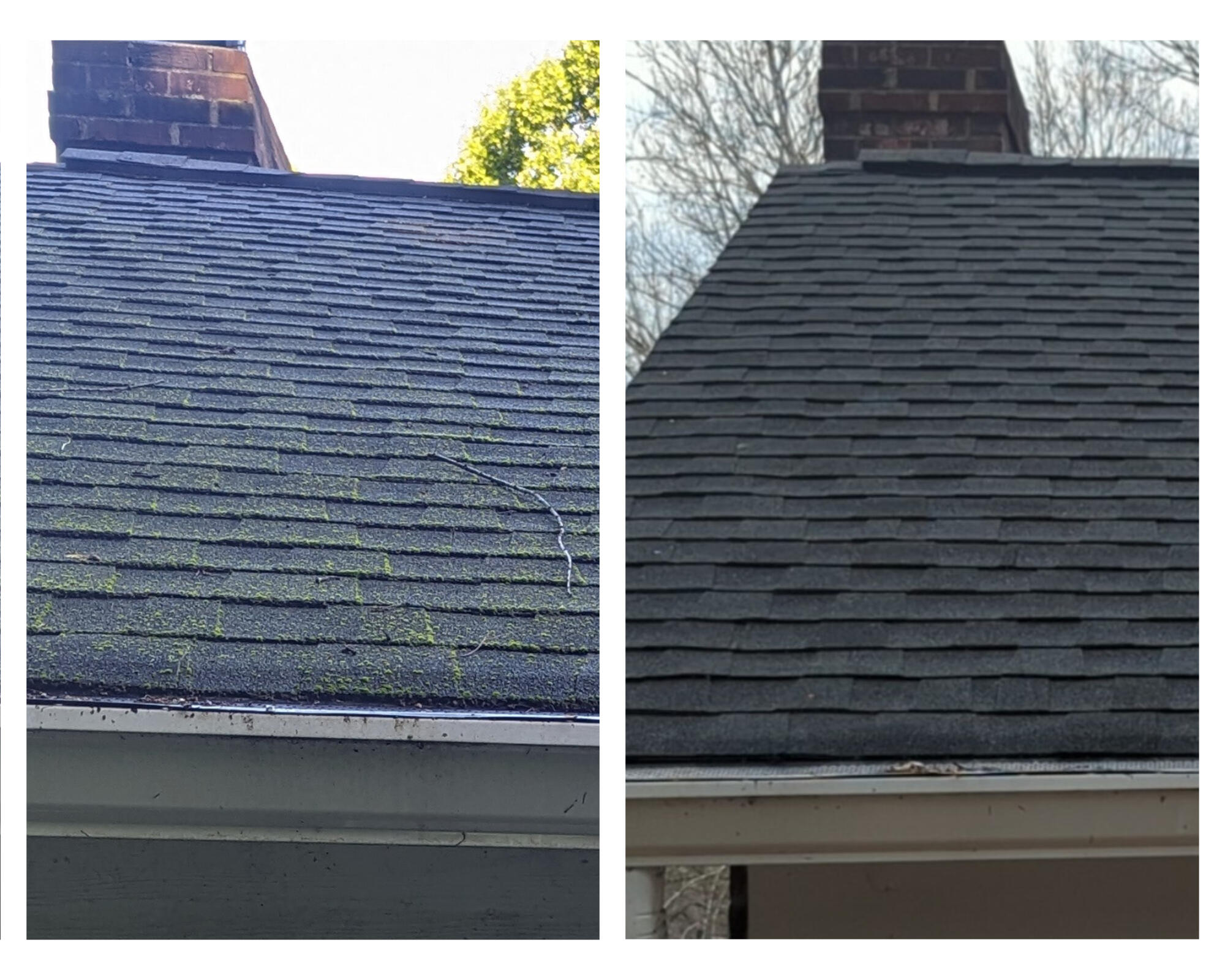 Low-pressure roof washing to remove algae and organic growth safely.